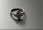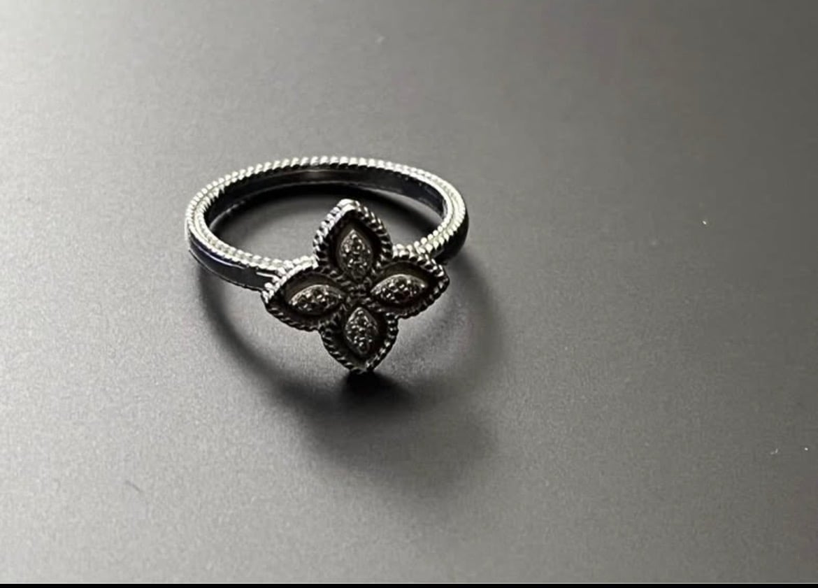Elegant sterling silver clover ring (size 6) featuring a classic quatrefoil design with delicate milgrain detail and sparkling small cubic zirconia accents. Perfect as a fashion ring or everyday wearable piece. Hallmarked 925 for sterling silver.