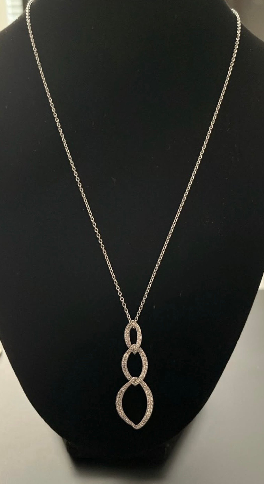 925 Sterling Silver CZ Triple Loop Pendant Necklace – 18”