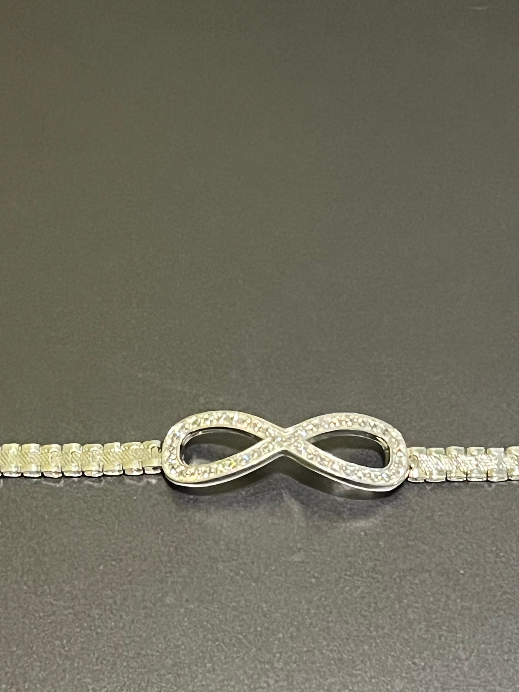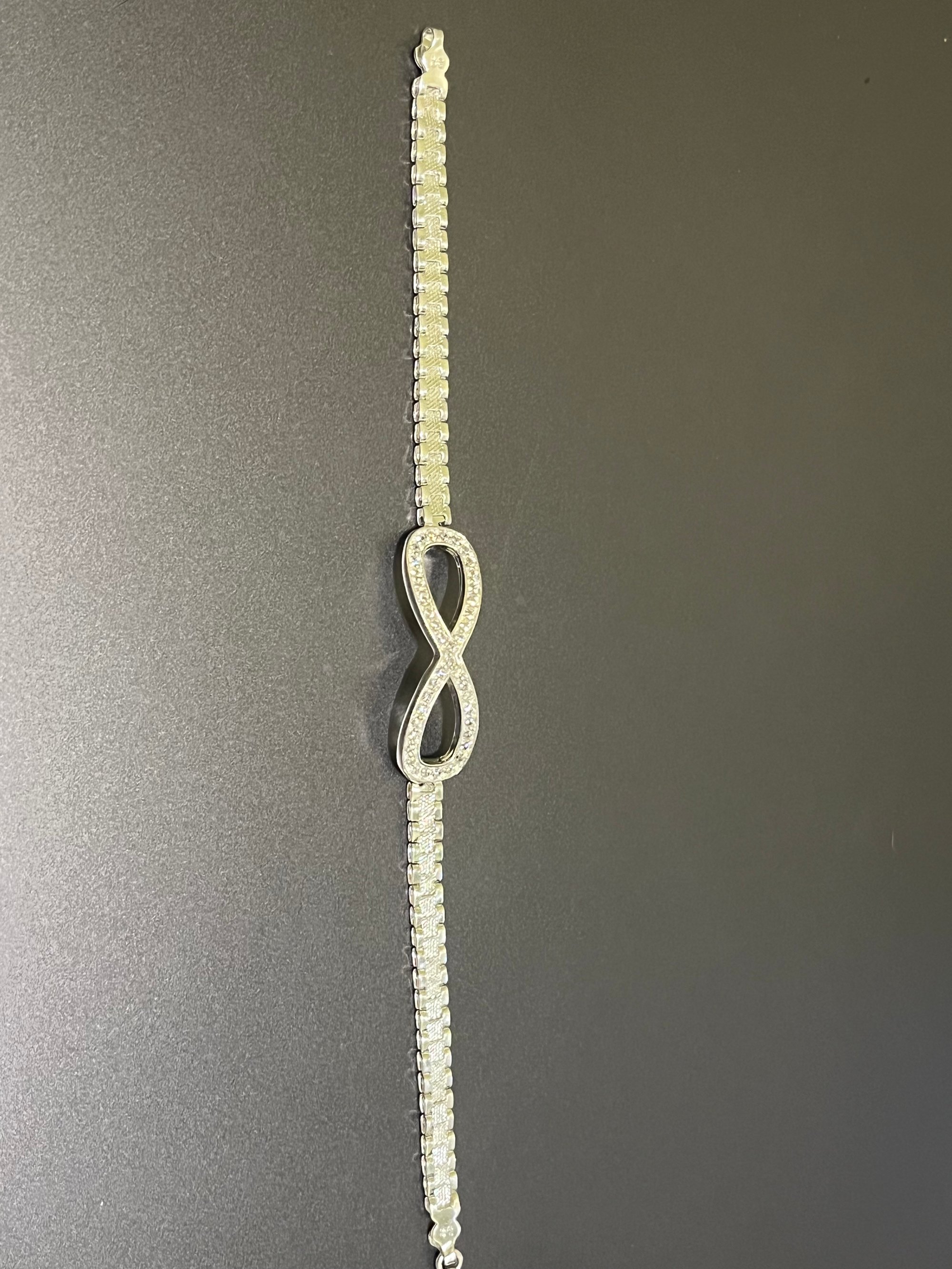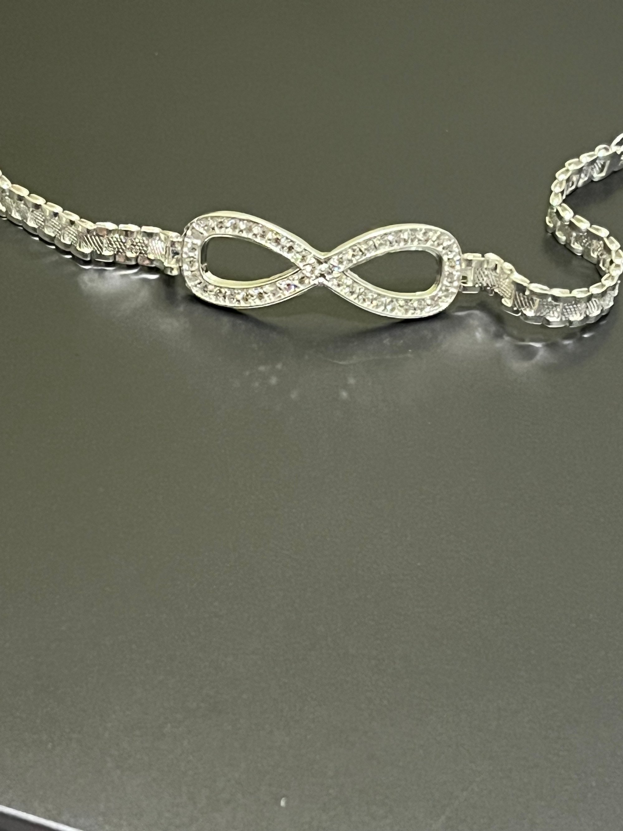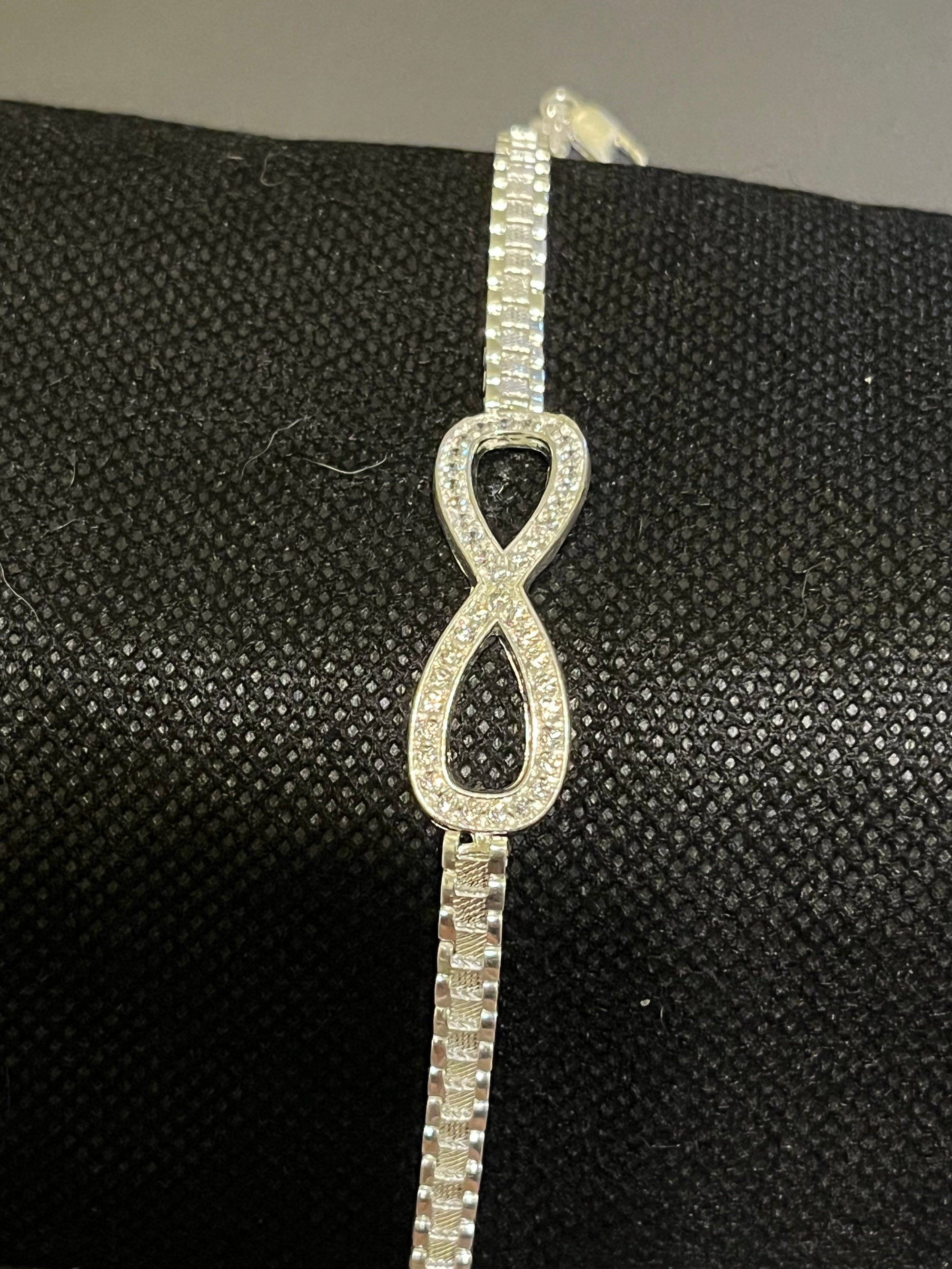 Elegant infinity bracelet crafted from genuine 925 sterling silver, featuring sparkling crystal accents. A timeless symbol of eternal love and connection, ideal for everyday wear or gifting. Lightweight, polished, and secured with a clasp closure.