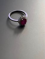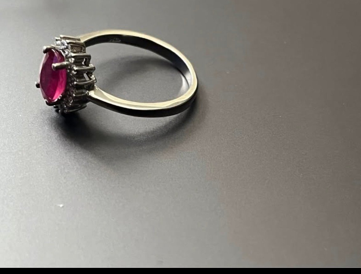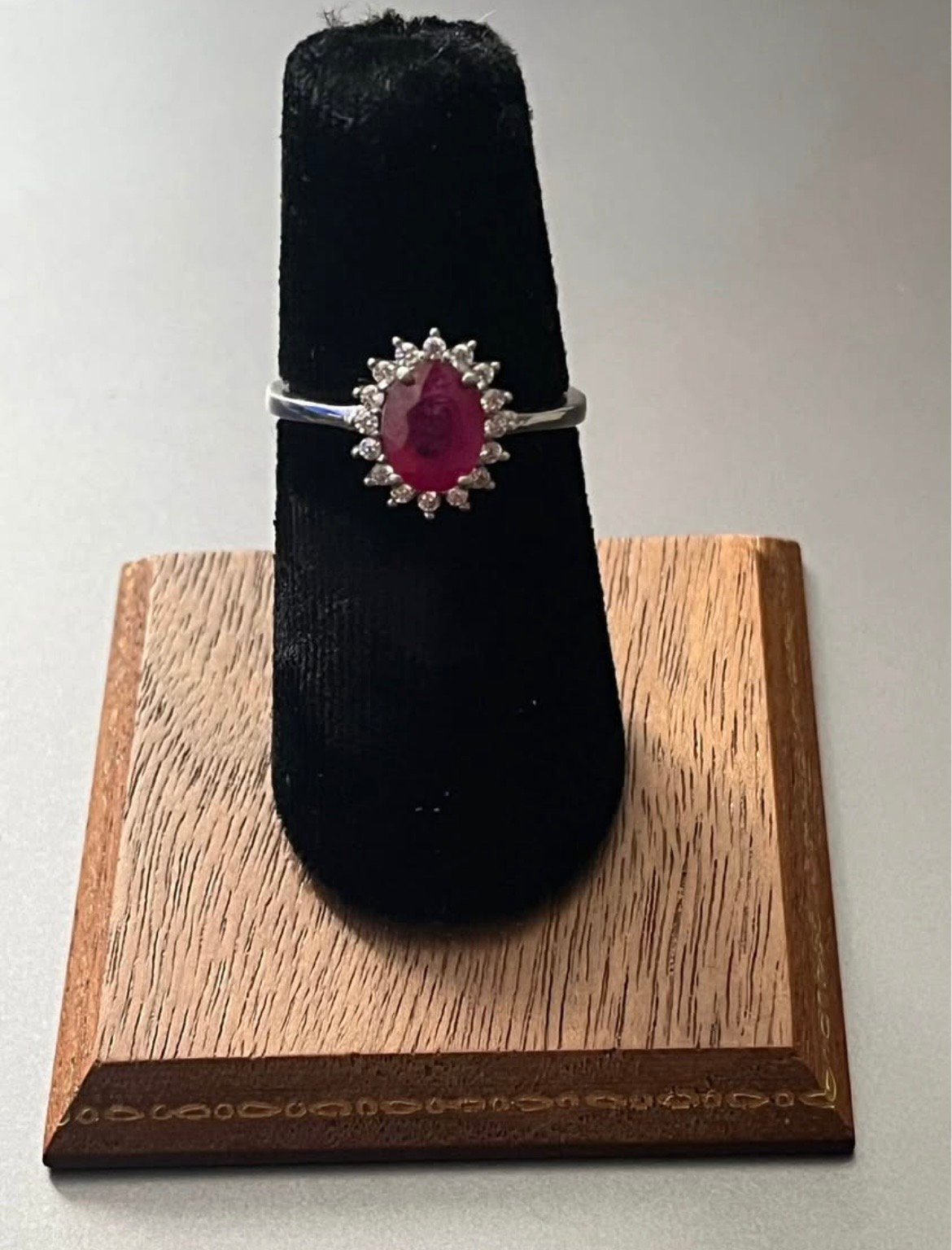 Stunning size 7 sterling silver ring featuring a vibrant red oval center stone surrounded by brilliant CZ accents. Eye-catching halo design that delivers big sparkle and timeless elegance—perfect as a statement ring or unforgettable gift.