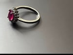 Sterling Silver Red Oval CZ Halo Ring – Size 7